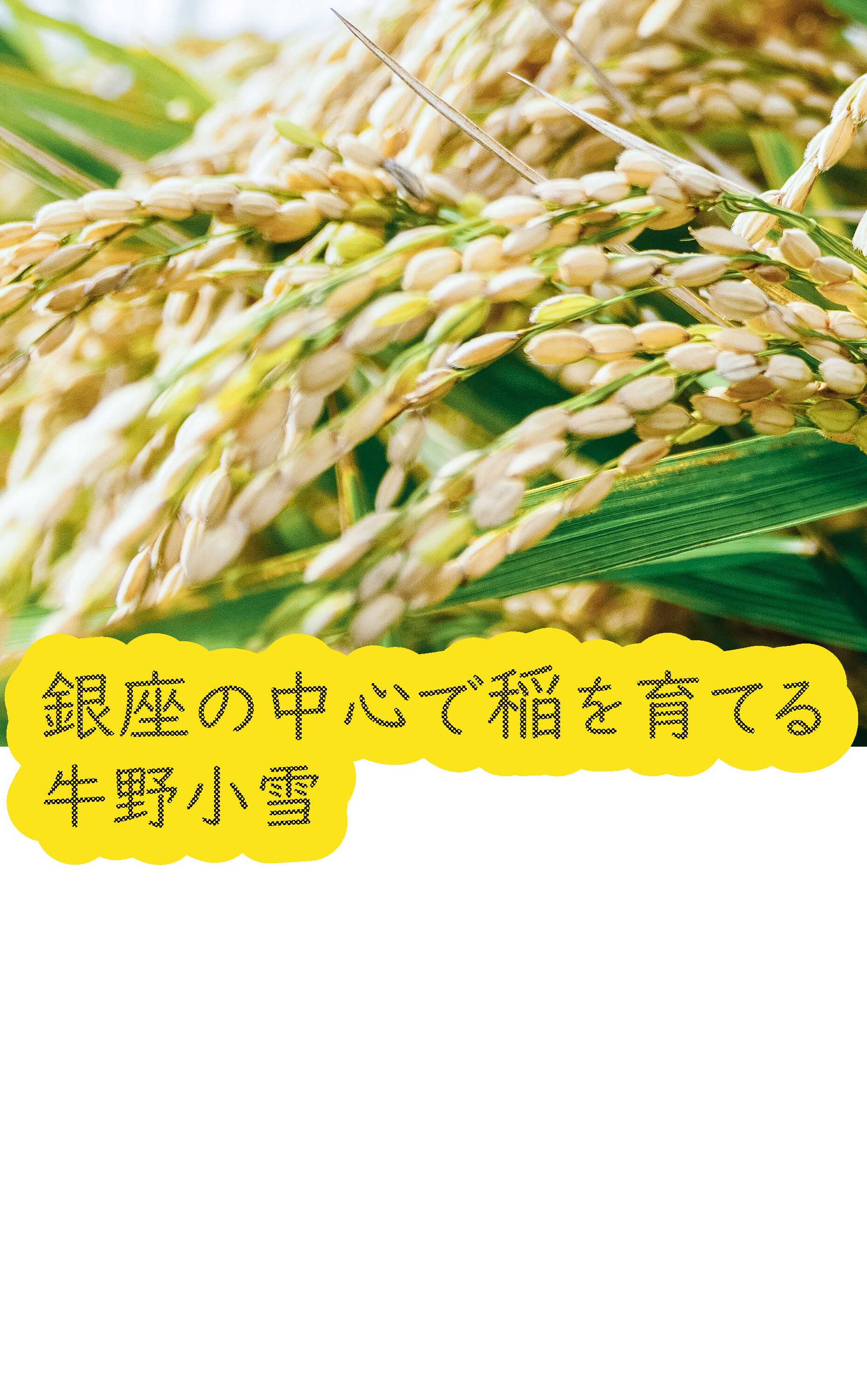 とはいえ『銀座の中心で稲を育てる』はどういう話なのか、と考えてみると稲を育てる話で、やはり上のイメージ以外には考えられない。銀座を意識した都会の絵だとイメージはズレる。稲を育てる話なのでメインはやはり稲でなければならない。