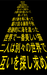 隠した方が良いんじゃないかと青い色で枠を作り、そこに題名と作者名を入れてみた。上下に分けて大字にするというのは気に入った。自分勝手な感覚だが上下の合わさるところに中心点が来るからバランスはとれていると思う。
